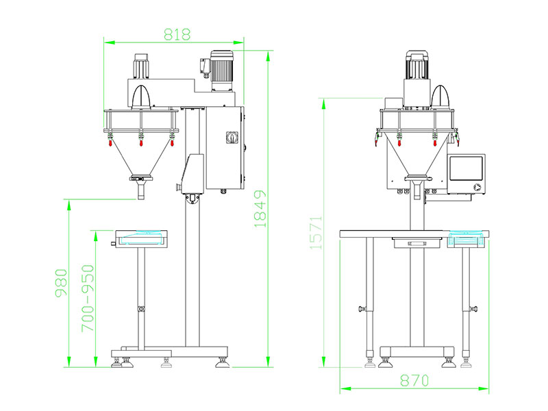 设计成称重反馈比重跟踪式,克服了因物料比重变化而致使包装重量发生变化的缺点。